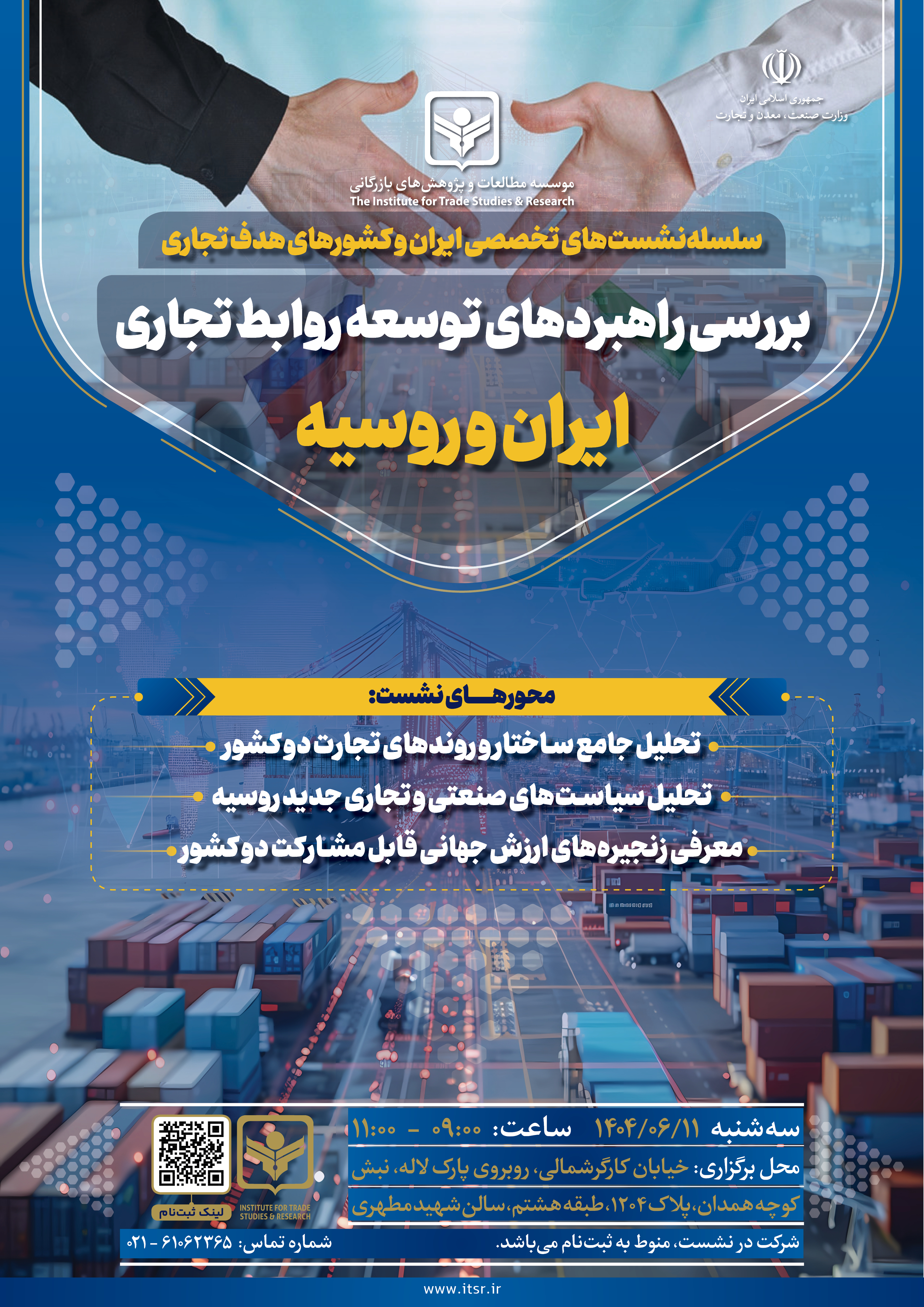 نشست بررسی راهبردهای توسعه روابط تجاری ایران و روسیه در روز سه شنبه 11 شهریور برگزار می شود